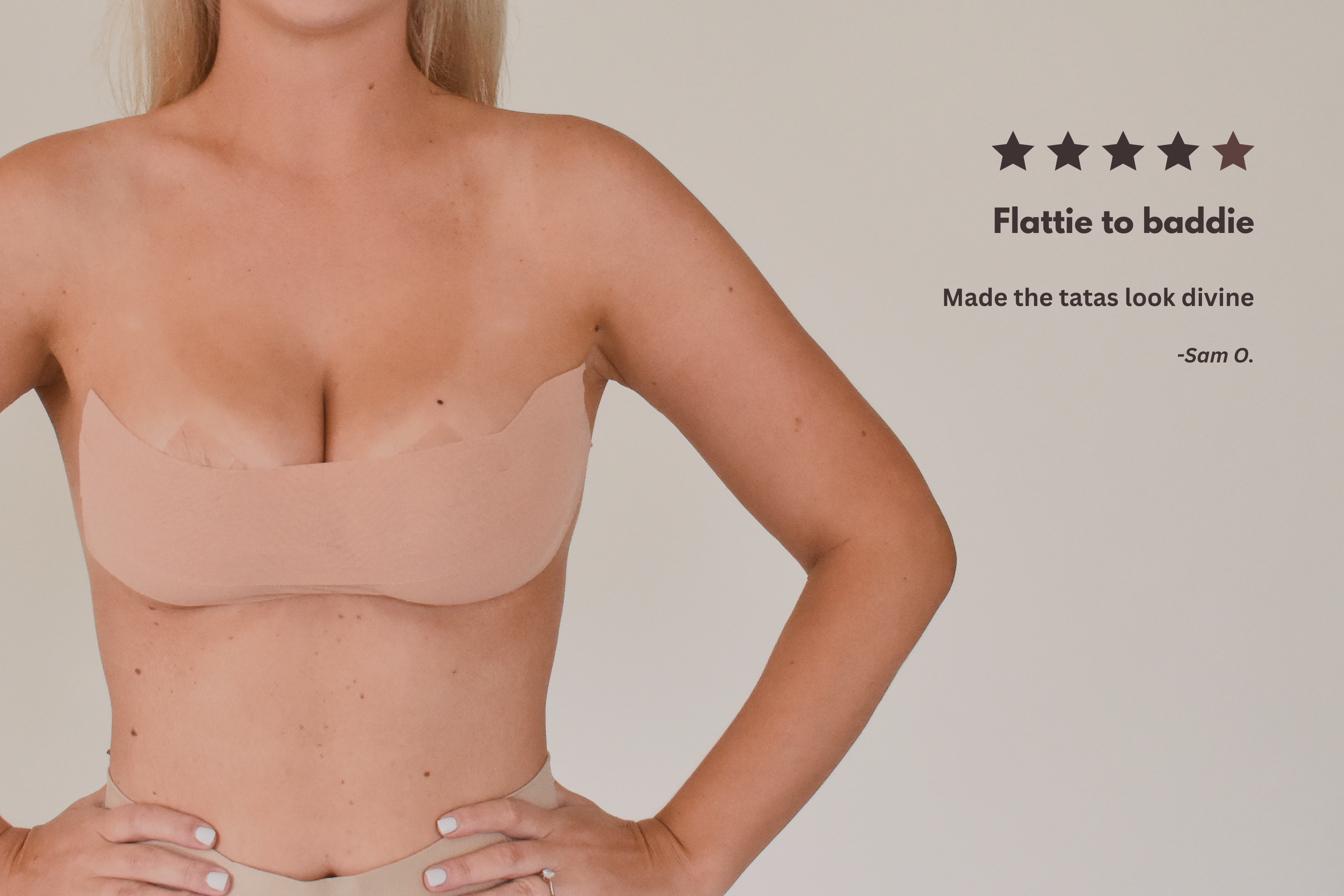 Everyboobi bra-less solutions will take your ta-ta's to new heights without the restrictions of a bra.